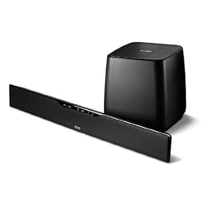The Soundbar IHT 6000 is totally sufficient for a medium size room and the sound is crisp and clear with a remarkably powerful subwoofer. Out of the box and installed in 10 minutes. Works with TV remote for volume and mute. Surprised to find that it is quite powerful and is not distorted even at high volume levels. Good technology with the fiber optic cable (included)that hooks to the TV. Allows 3 inputs, but no HDMI as some other units. Good volume control for the subwoofer which is a must.